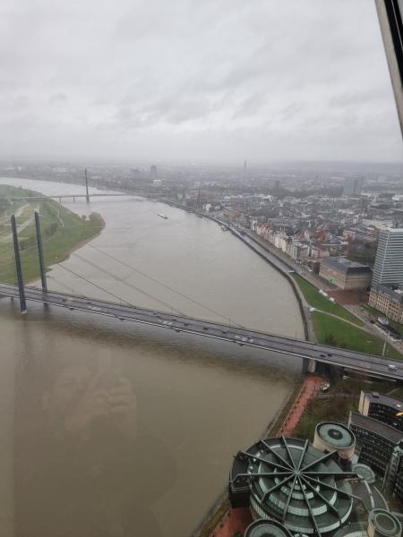 Aufnahme vom Rheinturm Düsseldorf, Rhein