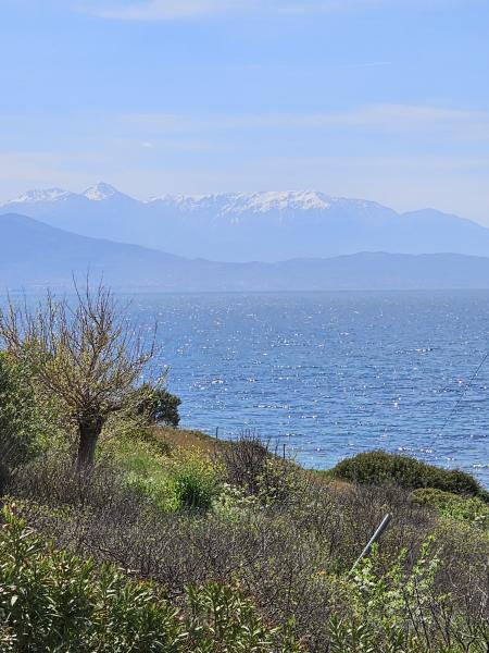 Blick auf die verschneiten Berge des Peloponnes von kosteika aus